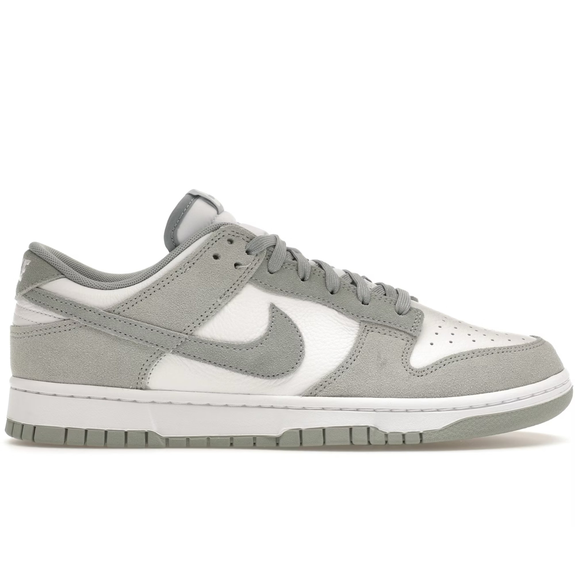 The Nike Dunk Low SE 'Light Pumice' sports a white leather upper with grey suede overlays and a matching Swoosh. A padded collar keeps the fit comfortable, while perforated details on the toe box stay true to the OG design. These shoes have a white rubber midsole and a grey rubber outsole to wrap up the look.